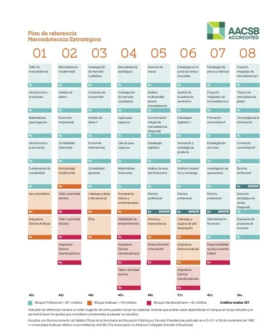 Descubre semestre a semestre las materias que conforman el plan de estudios Anáhuac de Licenciatura en Marketing.
